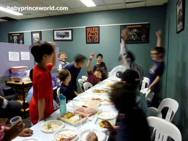 話說開Party嘅地方,係一個尊比小朋友玩槍戰嘅鋪頭,o係呢度開Party~可以玩兩次槍戰。玩完第一次就食d野,再玩多次,然後就切蛋糕咁law~而呢班低B仔就o係玩完第一次槍戰之後,開會決定下一場槍戰分兩隊玩定三隊玩,兼夾邊個做隊長。